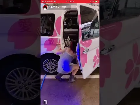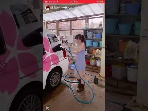 タクシーのを洗車するお姉さん