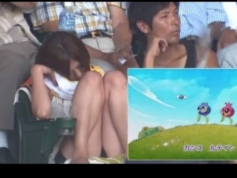 話に夢中でハンカチずれてチラリ