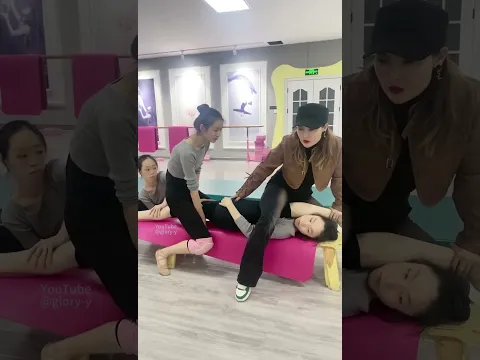 Dance flexibility class the girl hurt her feet and wouldn' t rest with bandages. xn