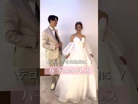 ハートカットドレスを知っていますか?胸元がハートのようにカットされた形を言いますパフスリーブはつけ外し可能になっています○デコルテをすっきりさせたいという花嫁様ぴったりのドレスです #shorts