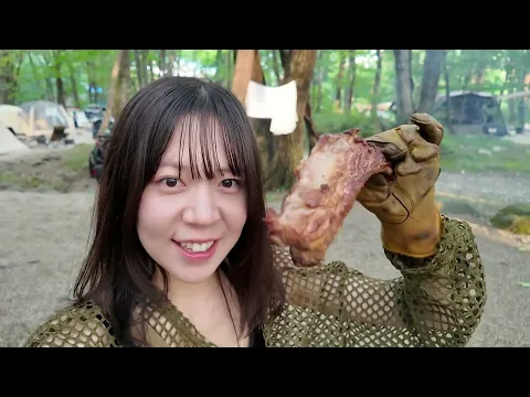 何これ?初めてのテントに苦戦 鬼でかステーキを岩塩プレートで焼く / Grilling beef on a rock salt plate at Trouble Camp