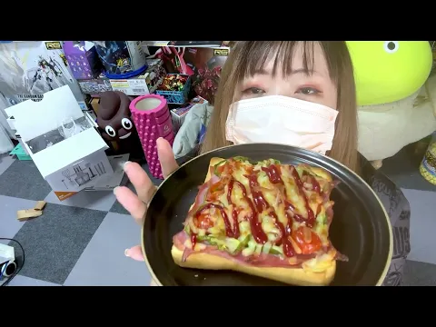 16歳のトイプーは野菜ご飯 私はもりもりのピザパン! 16 y/o toy poodle gets veggies I get loaded pizza bread! 943-1スパチャお礼