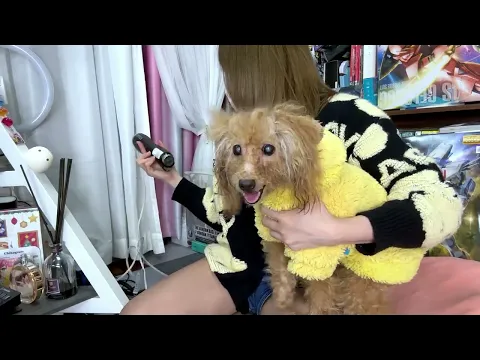 顔を洗ってドライヤーされる犬 A dog getting washed and blow-dried! 859スパチャお礼