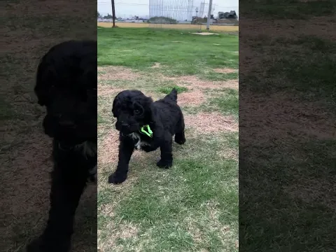 スタンダードプードル ママはパーティーカラー。胸元に白のワンポイントあり。黄色リボン男の子。