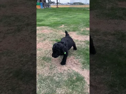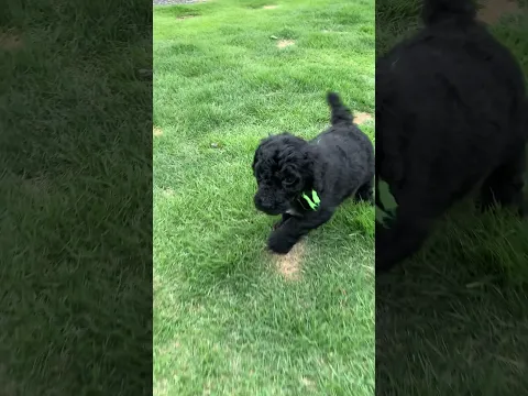 スタンダードプードル 胸元に白のワンポイントあり。黄色リボン男の子。