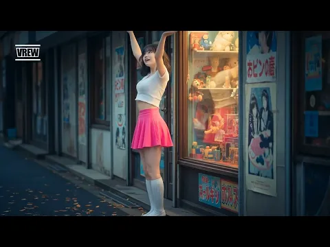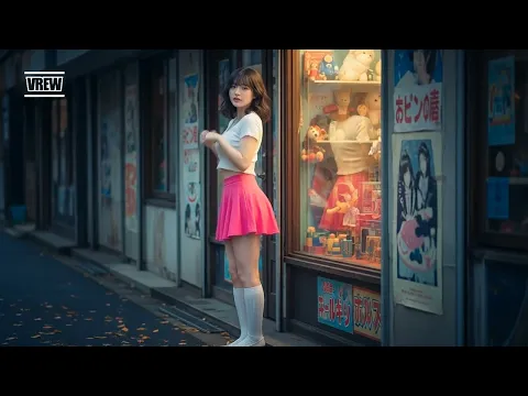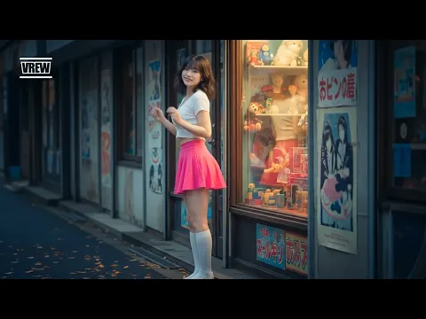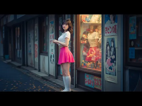 レトロな店の前のミニスカートにハイソックスの女子【AI美女】