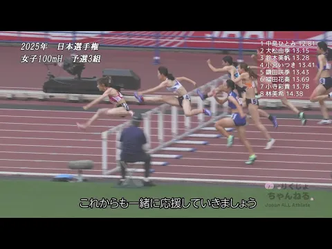 最高記録保持者集結【女子100mH予選2組】2025年日本選手権【島野真生・福部真子・青木益未】