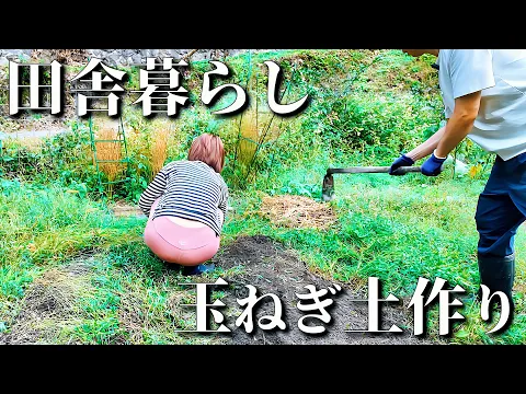 田舎暮らし人妻の畑作業、ニンニクの土作りと白菜にネットをかけた