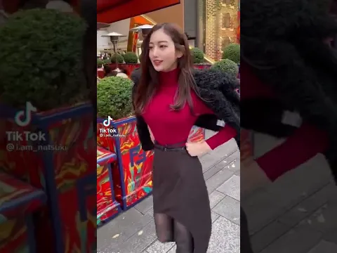 目のやり場に困る 謎の赤ニット美女