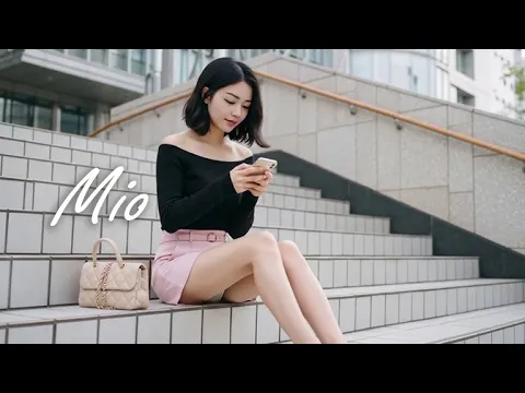 黒いトップスとピンクのミニスカートを着って無防備に座っている美女 Pretty Lady in a Black Top and Pink Mini Skirt Paper Heel Echo