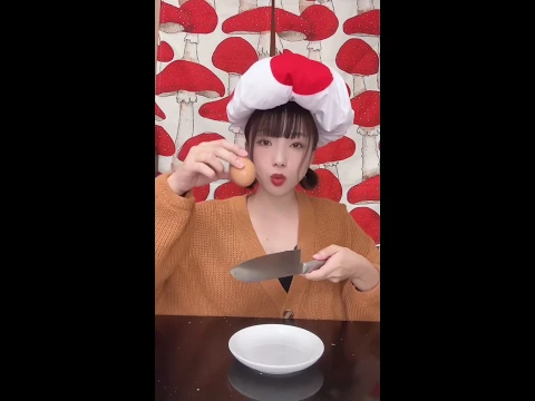 衝撃 包丁の上に卵を落として刺してみたらまさかの結果に
